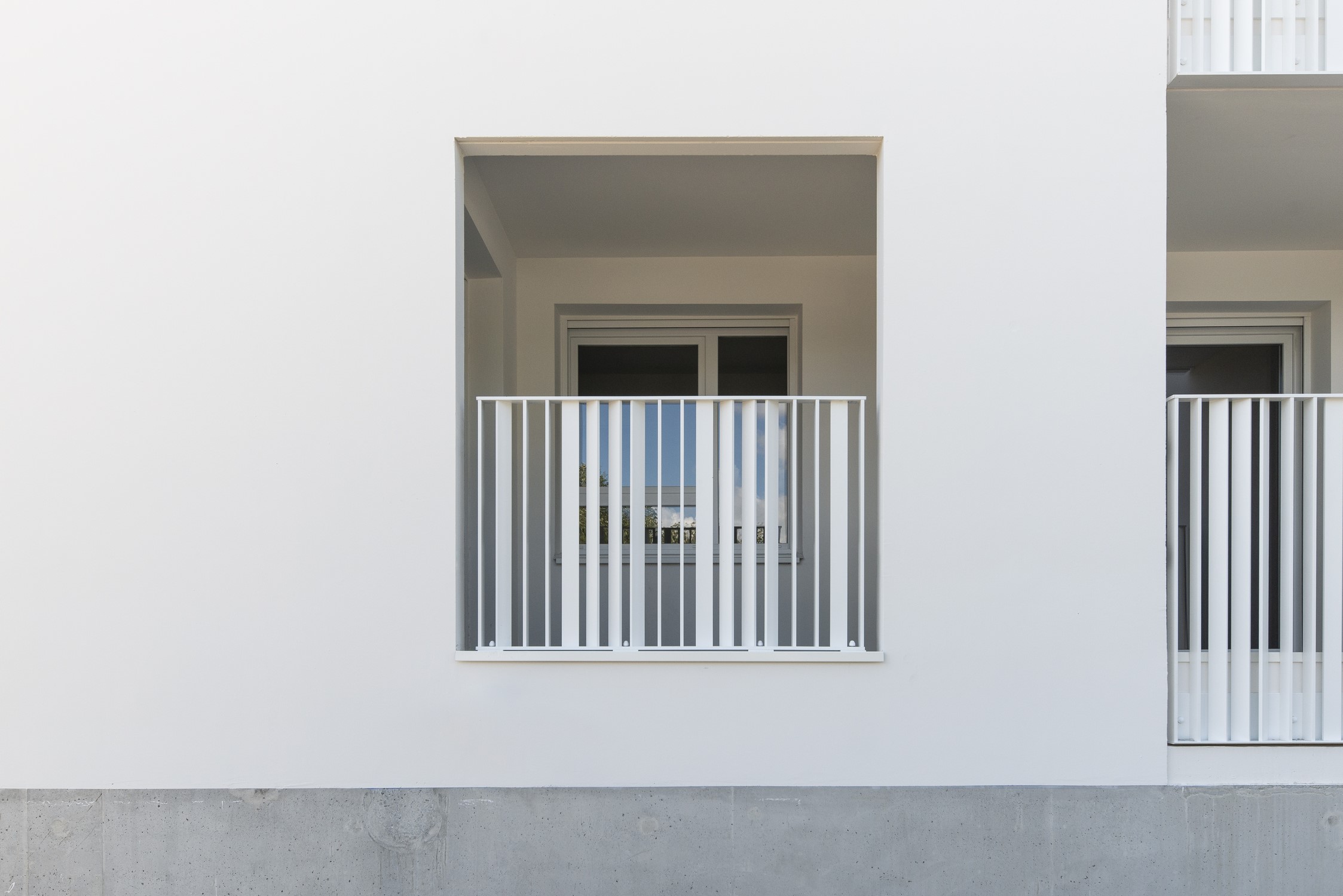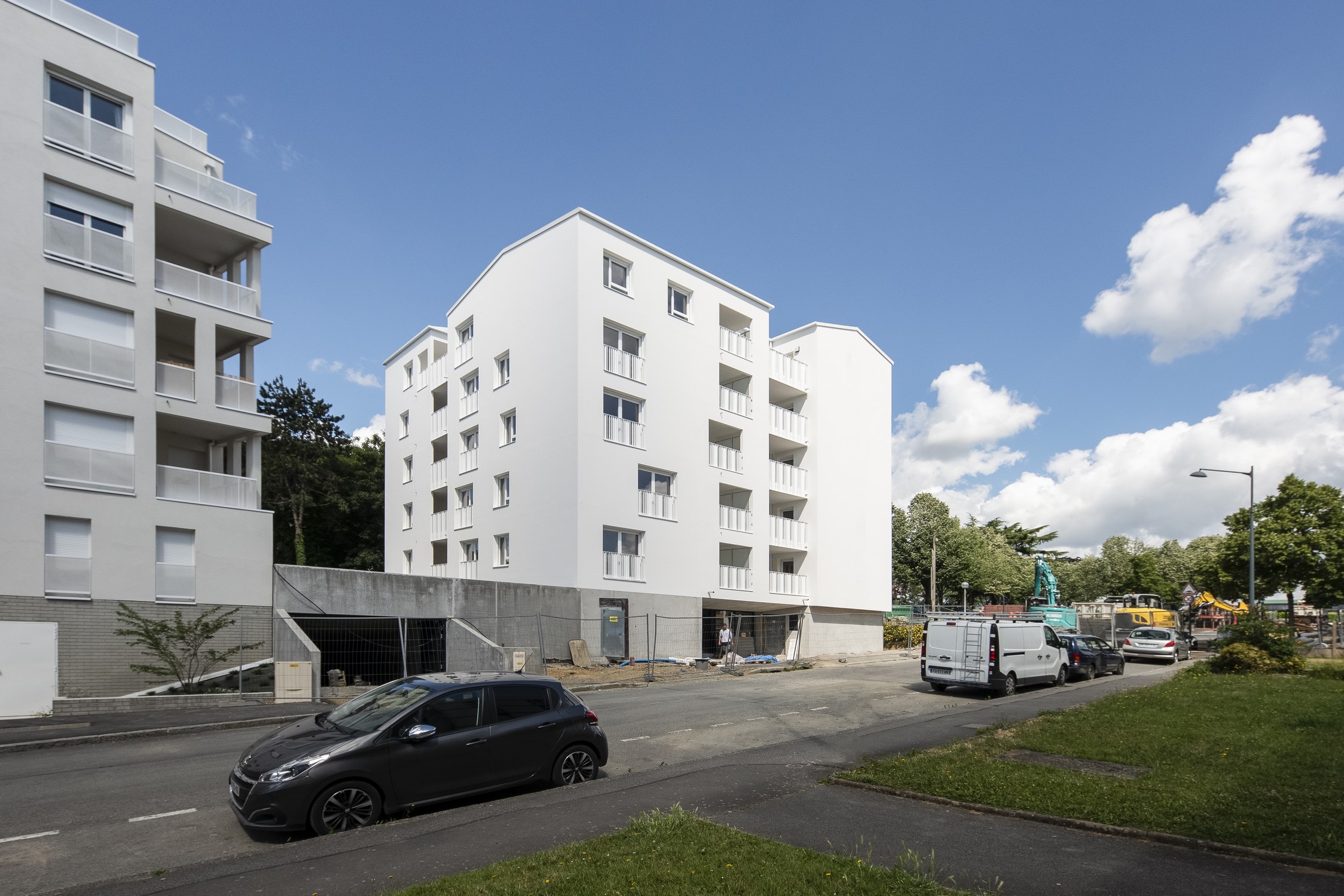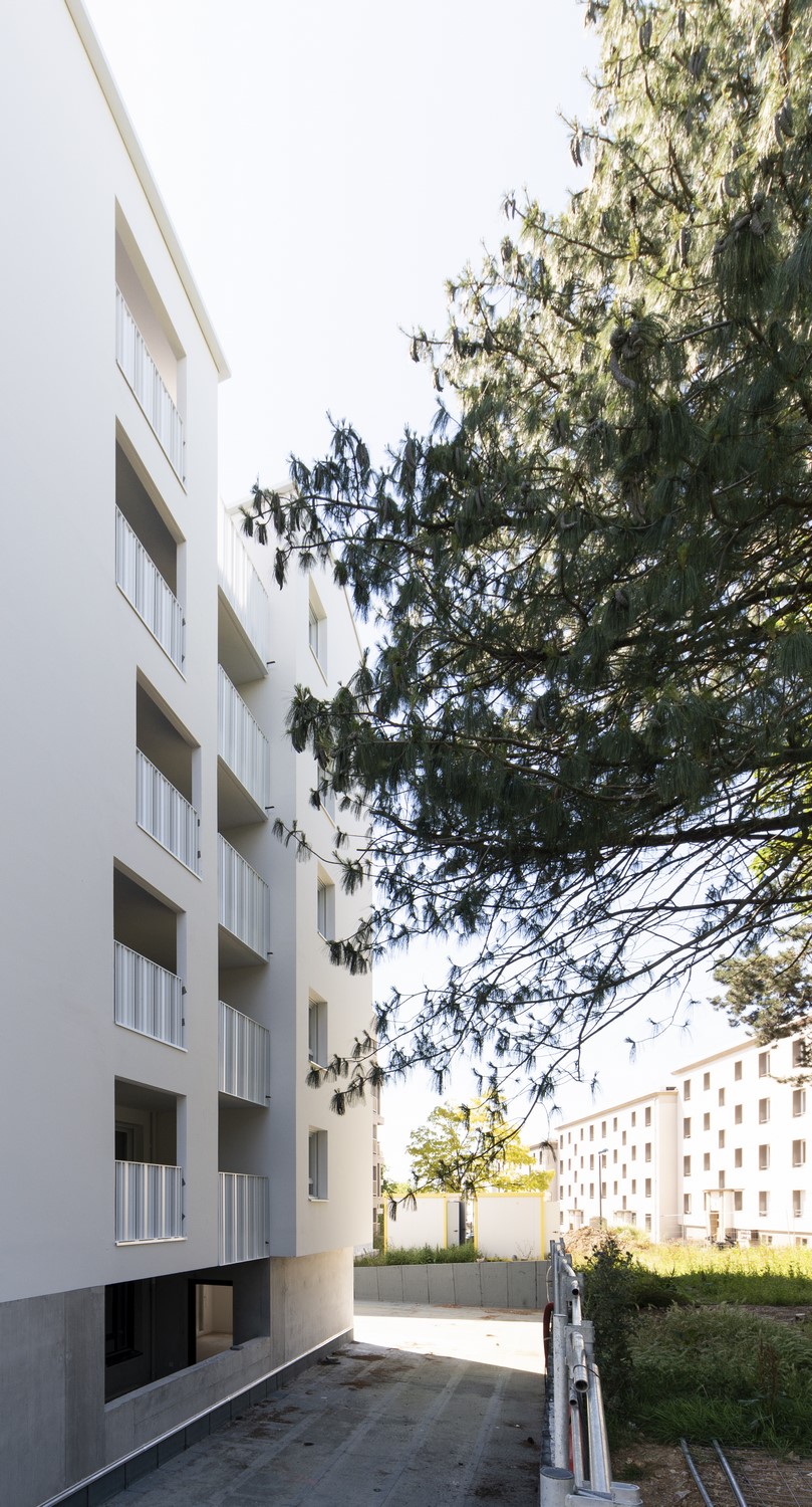 L’unité du projet se traduit dans le choix assumé d’une couleur unique pour les façades, les menuiseries et les garde-corps.