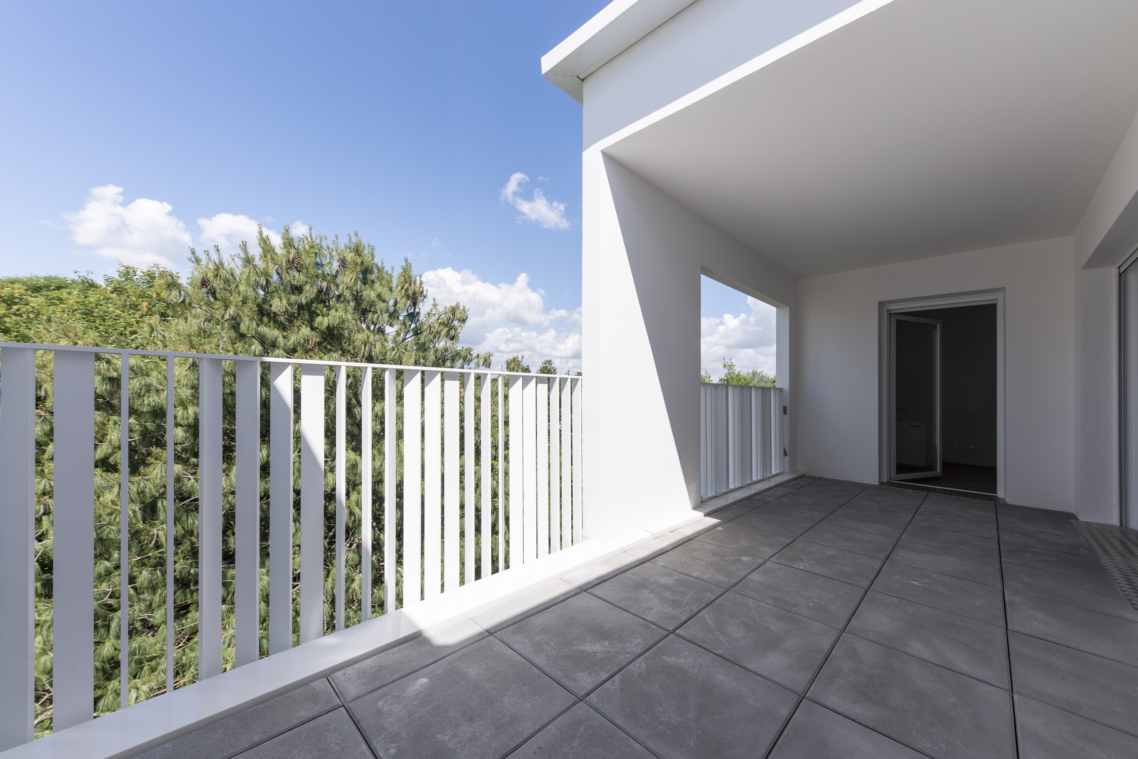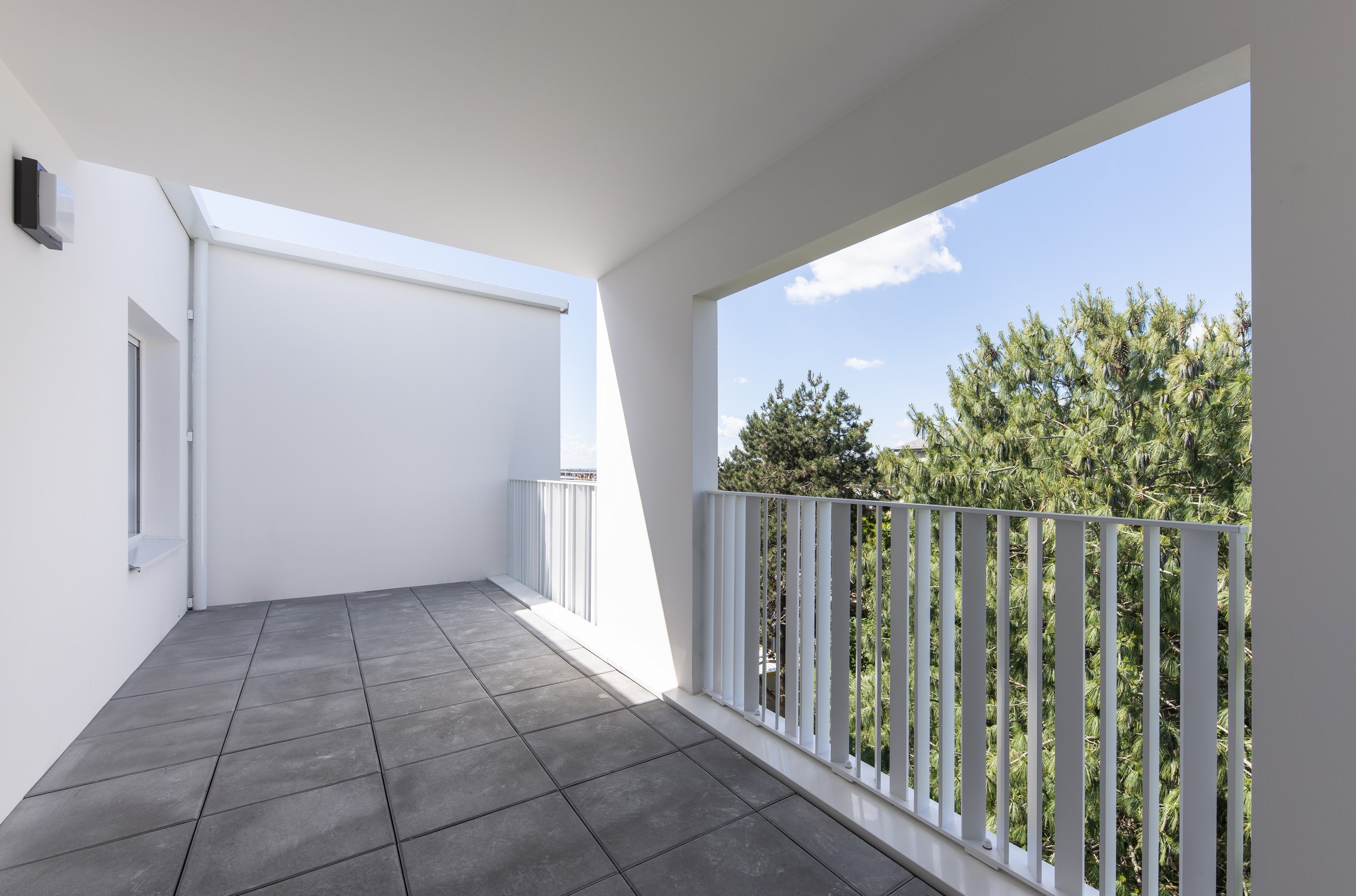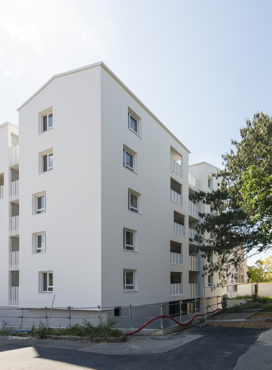 L’unité du projet se traduit dans le choix assumé d’une couleur unique pour les façades, les menuiseries et les garde-corps.